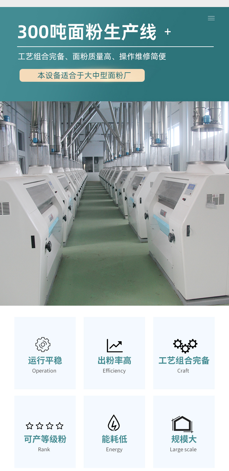 300噸級(jí)面粉加工機(jī)械特點(diǎn):